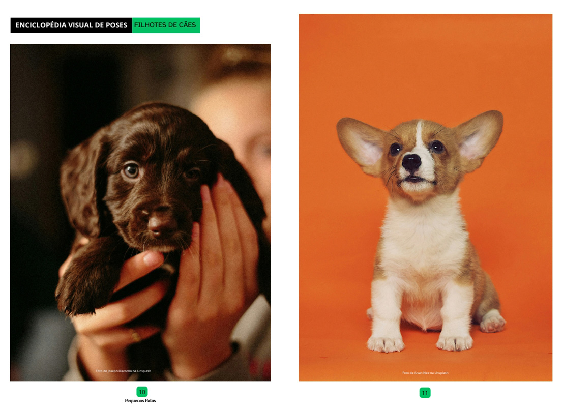 A coleção foi concebida como ferramenta de apoio para artistas, ilustradores, fotógrafos, designers, educadores e criadores de conteúdo. O conjunto dos dois livros amplia as possibilidades de referência para desenho, pintura, animação, projetos gráficos e atividades pedagógicas. Pequenas Patas – Enciclopédia Visual de Poses consolida um acervo organizado por temas, com foco em documentação visual e análise do comportamento de filhotes, reunindo em uma única coleção material dedicado a cães e gatos em fase inicial de vida.