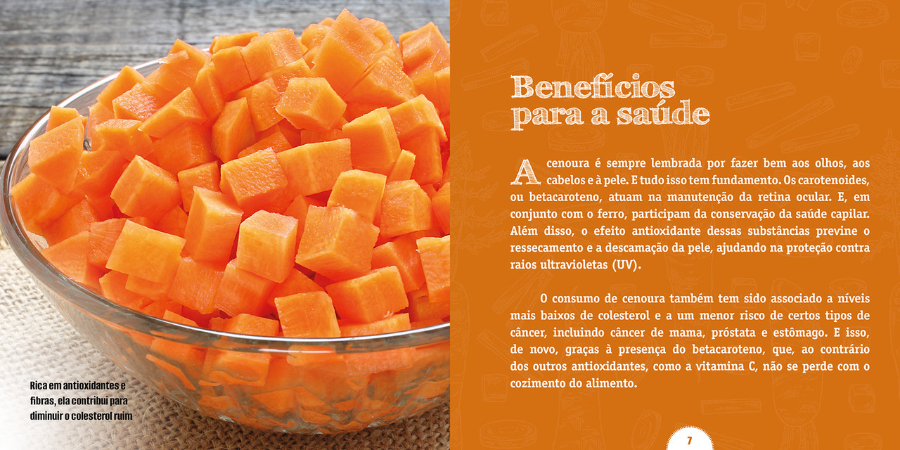 Composta por oito livros: Berinjela, Beterraba, Cenoura, Batata, Brócolis, Tomate, Abobrinha e Couve-flor, a coleção Turma dos Vegetais apresenta as propriedades nutricionais, os benefícios para a saúde e curiosidades desses alimentos. Além disso, cada livro traz 18 receitas saborosas e nutritivas, que levam o vegetal como ingrediente principal ou coadjuvante.