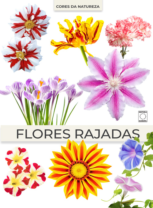 O volume Flores Rajadas da coleção Cores da Natureza apresenta uma seleção de flores caracterizadas por pétalas com padrões rajados, em que cores distintas se distribuem de maneira alternada ou irregular. A proposta é oferecer um registro visual de espécies que exibem esse tipo específico de variação cromática, útil tanto para observação estética quanto para aplicações em design floral e paisagismo.