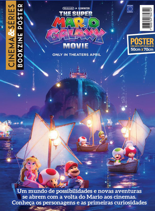 O bookzine pôster The Super Mario Galaxy Movie faz parte da coleção Clássicos do Cinema. A edição celebra a nova aventura cinematográfica inspirada no universo galáctico da franquia Mario, destacando a jornada interplanetária do herói, da Princesa Peach e dos Toads em meio a mistérios cósmicos e mundos flutuantes. A narrativa transporta os personagens para além do Reino Cogumelo, explorando constelações vibrantes e desafios que redefinem o destino da galáxia. Acompanha o bookzine um pôster com arte de 50 cm x 70 cm, que retrata Mario e seus aliados navegando por um mar iluminado por estrelas cadentes, simbolizando a grandiosidade visual da aventura.
