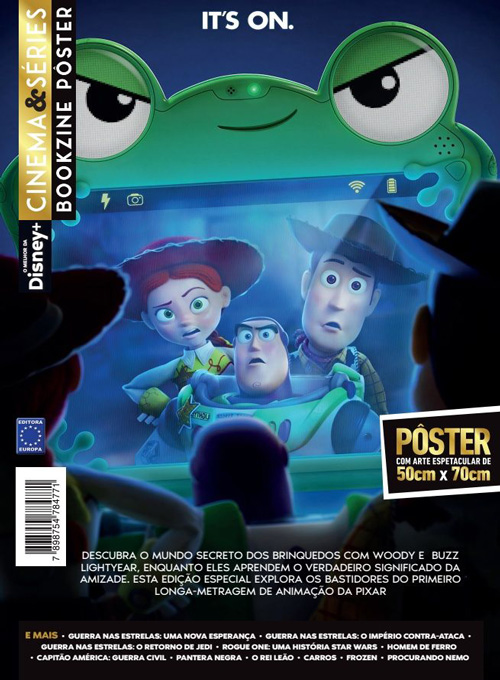 O bookzine pôster Toy Story 5 faz parte da coleção Clássicos do Cinema. A edição celebra o retorno dos personagens mais amados da Pixar em uma nova aventura que expande o universo dos brinquedos para além de fronteiras já conhecidas. A narrativa acompanha Woody, Buzz, Jessie e seus amigos diante de desafios que testam laços, memórias e o verdadeiro significado de pertencimento. Com novos cenários e figuras inesperadas, o quinto capítulo aprofunda temas de amizade e reinvenção. Acompanha o bookzine um pôster com arte de 50 cm x 70 cm, que destaca o grupo reunido em clima de descoberta, simbolizando a emoção e o encanto desta nova jornada.