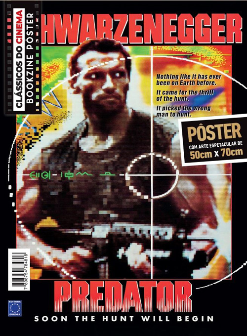 O bookzine pôster Predator faz parte da coleção Clássicos do Cinema. A edição revisita o icônico filme de 1987 estrelado por Arnold Schwarzenegger, que combina ação militar e terror sci-fi em uma selva implacável. A narrativa acompanha uma equipe de elite em missão de resgate que se vê caçada por uma criatura alienígena com tecnologia avançada e visão térmica letal. A tensão cresce enquanto o confronto entre homem e predador revela instintos de sobrevivência em seu limite. Acompanha o bookzine um pôster com arte de 50 cm x 70 cm, que destaca o herói sob a mira digital da criatura, símbolo da perseguição implacável que marcou o clássico.