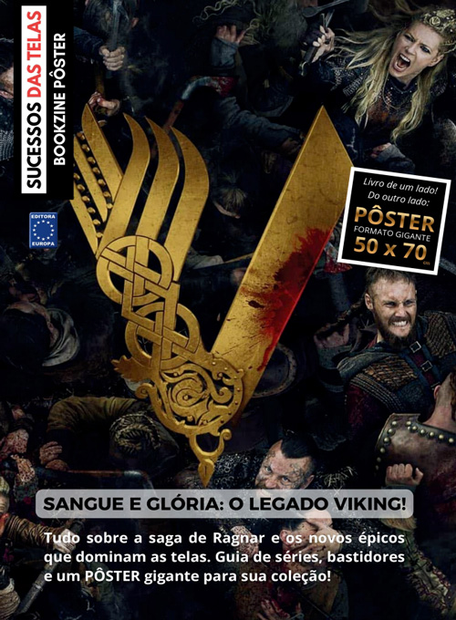 A publicação "Sangue e Glória: O Legado Viking!" apresenta um panorama completo sobre a trajetória de Ragnar Lothbrok e os personagens que marcam presença nas produções audiovisuais inspiradas na cultura viking. A edição traz ainda um pôster em formato gigante (50 x 70 cm) no verso, reunindo elementos visuais marcantes relacionados à série. O material é indicado tanto para fãs que acompanham as produções desde o início quanto para novos interessados em conhecer o universo nórdico retratado nas telas.
