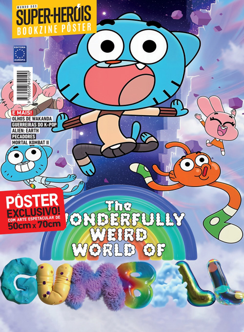 O bookzine pôster The Wonderfully Weird World of Gumball integra a Coleção Posterzine Mundo dos Super-Heróis, celebrando animações modernas que conquistaram o público com humor, criatividade e um estilo visual único. Esta edição revisita o universo caótico, colorido e imprevisível de Gumball e sua turma, destacando sua estética vibrante e narrativa irreverente. Acompanha um pôster exclusivo de 50 cm x 70 cm com arte espetacular que reforça o tema da capa, ideal para fãs e colecionadores.