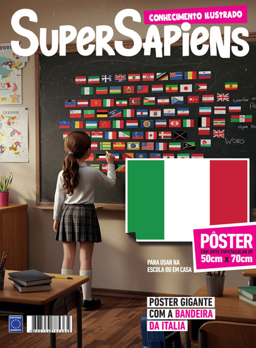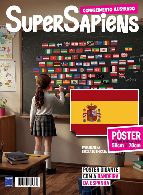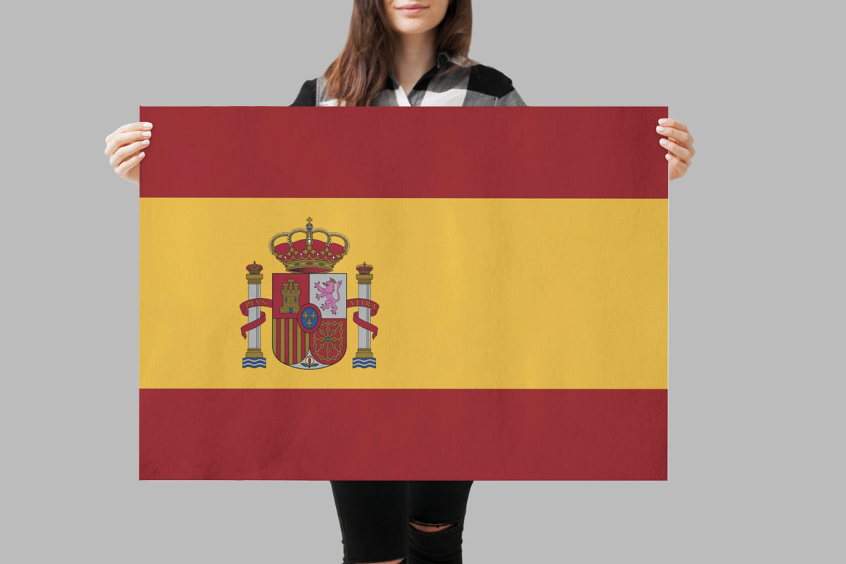 Bandeira de Espanha em formato 50x70cm em edição especial da Supersapiens Posterzine com bandeiras do mundo inteiro. Impressa em formato gigante e papel de alta gramatura. Para aprender, decorar, torcer e honrar o país.