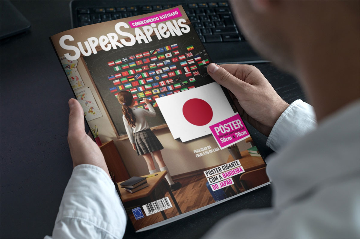 Bandeira do Japão em formato 50x70cm em edição especial da Supersapiens Posterzine com bandeiras do mundo inteiro. Impressa em formato gigante e papel de alta gramatura. Para aprender, decorar, torcer e honrar o país.